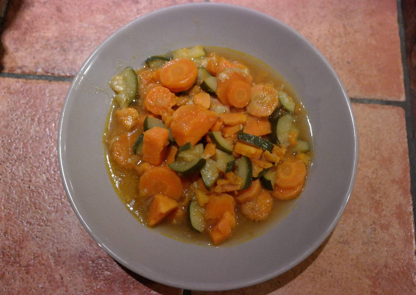 - Ajouter la patate douce coupée en cube assez gros et pour finir la courgette et les raisins si vous aimez le mélange sucré-salé