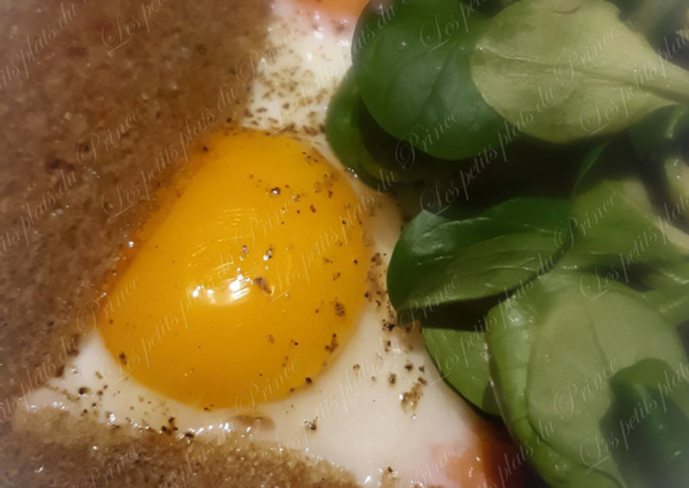 - Laissez cuire jusqu'à ce que le blanc de l'œuf soit bien coagulé, et le fromage fondu.
