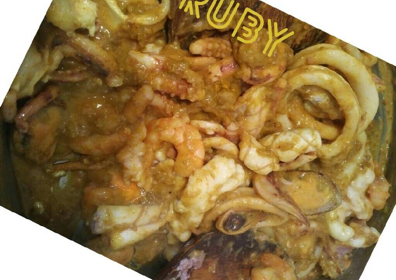Hey everyone, hope you're having an amazing day today. Today, I'm gonna show you how to prepare a distinctive dish, Les fruits de la mer au curry et lait de noix coco. It is one of my favorites. For mine, I'm gonna make it a little bit tasty. This is gonna smell and look delicious.