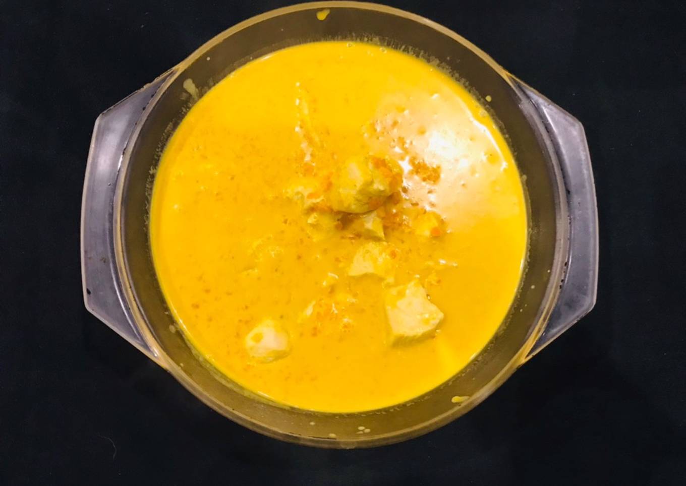 - Ajoutez votre lait de coco, le curry, le sel et le poivre.