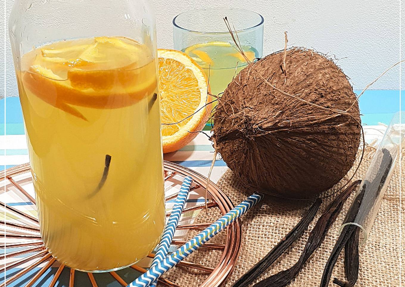 Hello everybody, I hope you're having an incredible day today. Today, I'm gonna show you how to prepare a distinctive dish, Eau de Coco à l'orange & à la vanille. One of my favorites food recipes. For mine, I will make it a little bit tasty. This will be really delicious.