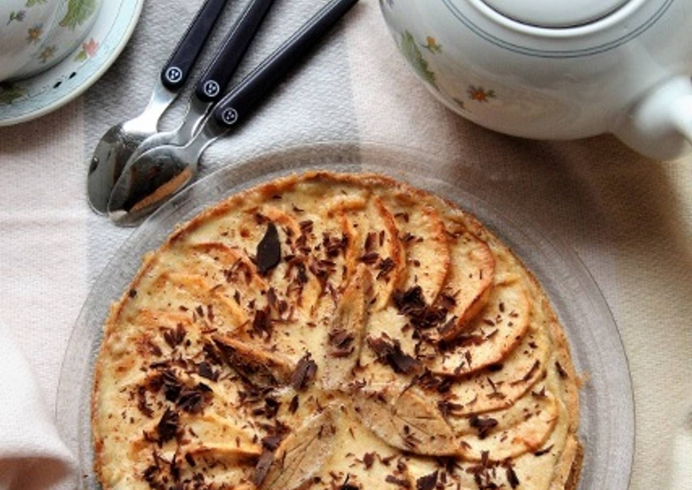 Une pâte sans gluten, un appareil à base de purée de pommes et de crème, sans oeufs ni lait. Le tout pour une succulente tarte originale.