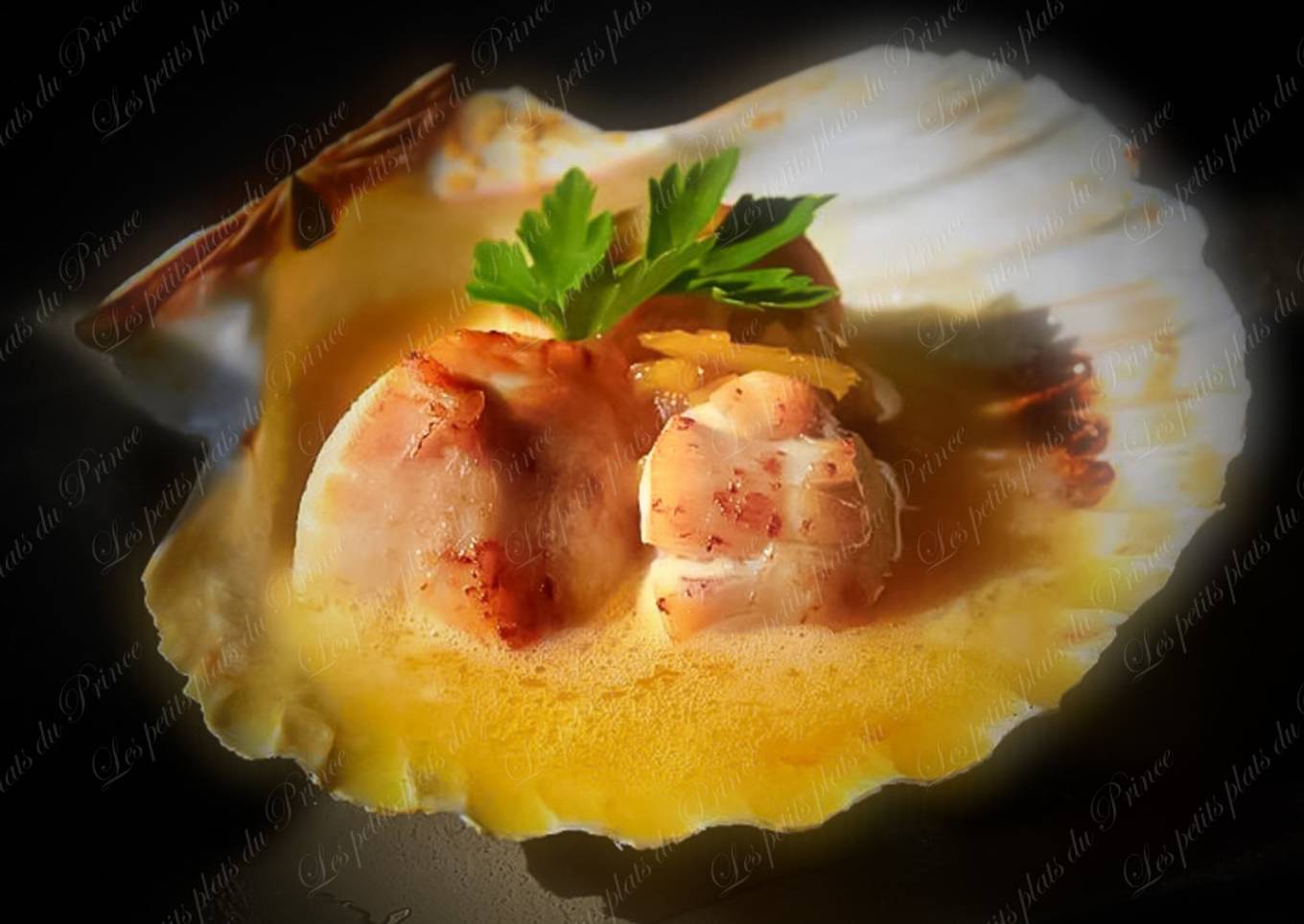 Noix de St Jacques, beurre de citron, miel et gingembre